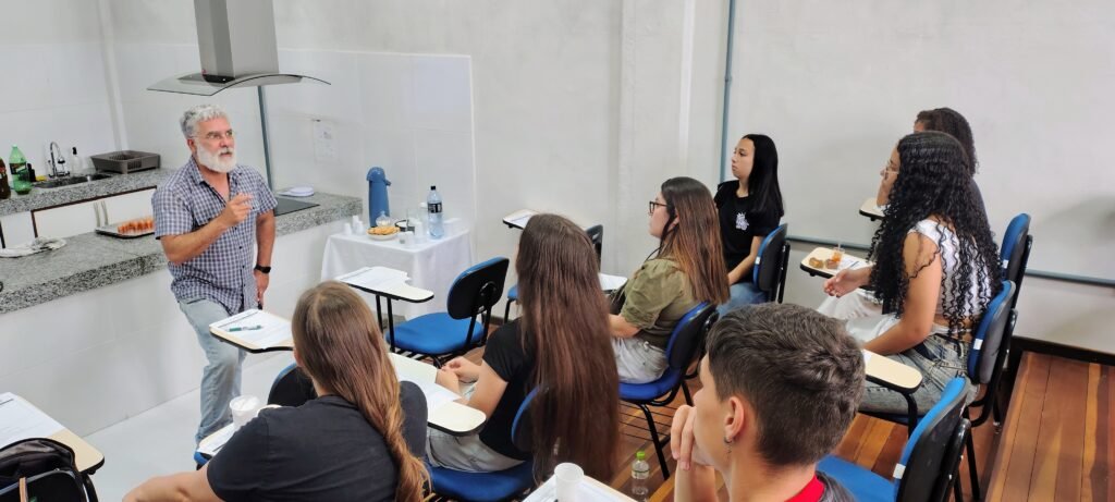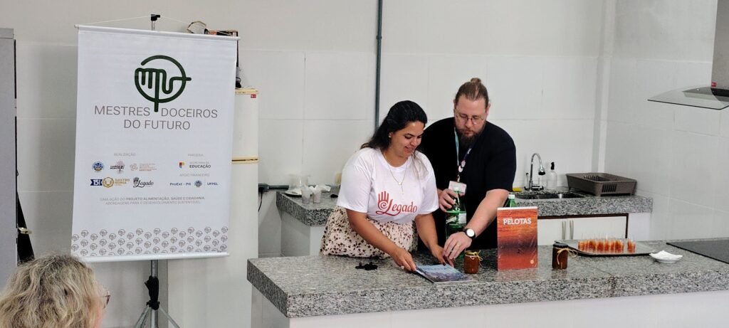 Durante a atividade, Camila e Airton prepararam a tradicional chimia de abóbora e apresentaram também uma releitura do doce, desenvolvida por eles, unindo tradição e inovação. A proposta permitiu que os alunos da EMEF Ferreira Viana aprendessem a receita tradicional, ao mesmo tempo em que conheceram e experimentaram novas possibilidades de preparo.