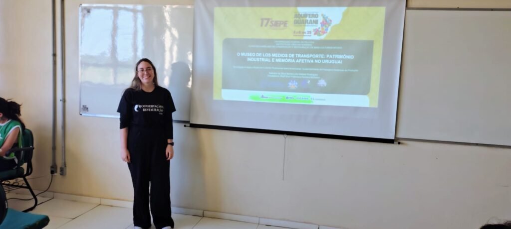 Em seguida, Nathália da Silva Benito apresentou o trabalho intitulado “O Museo de Los Medios de Transporte: Patrimônio industrial e memória afetiva no Uruguai”. O estudo abordou o museu fundado pelo Sr. Luís Miller, visitado em abril deste ano por parte do grupo Fábrica de Memórias. O trabalho apresentou o museu, os objetos do acervo e a história do Sr. Luís Miller, destacando dois automóveis de referência: o Chevrolet 1926 e o Ford Modelo T24.
