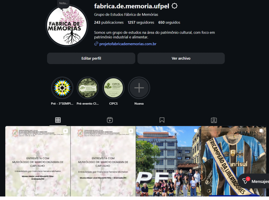 Grupo de Estudos Fábrica de Memória e o desenvolvimento da pesquisa vinculada ao projeto Tecnologias Antigas e Atuais em Museus e Comunidades Sustentáveis, visita museus do Rio Grande do Sul, buscando objetos que evidenciam as intersecções entre as diversas culturas responsáveis pela formação das cidades gaúchas.