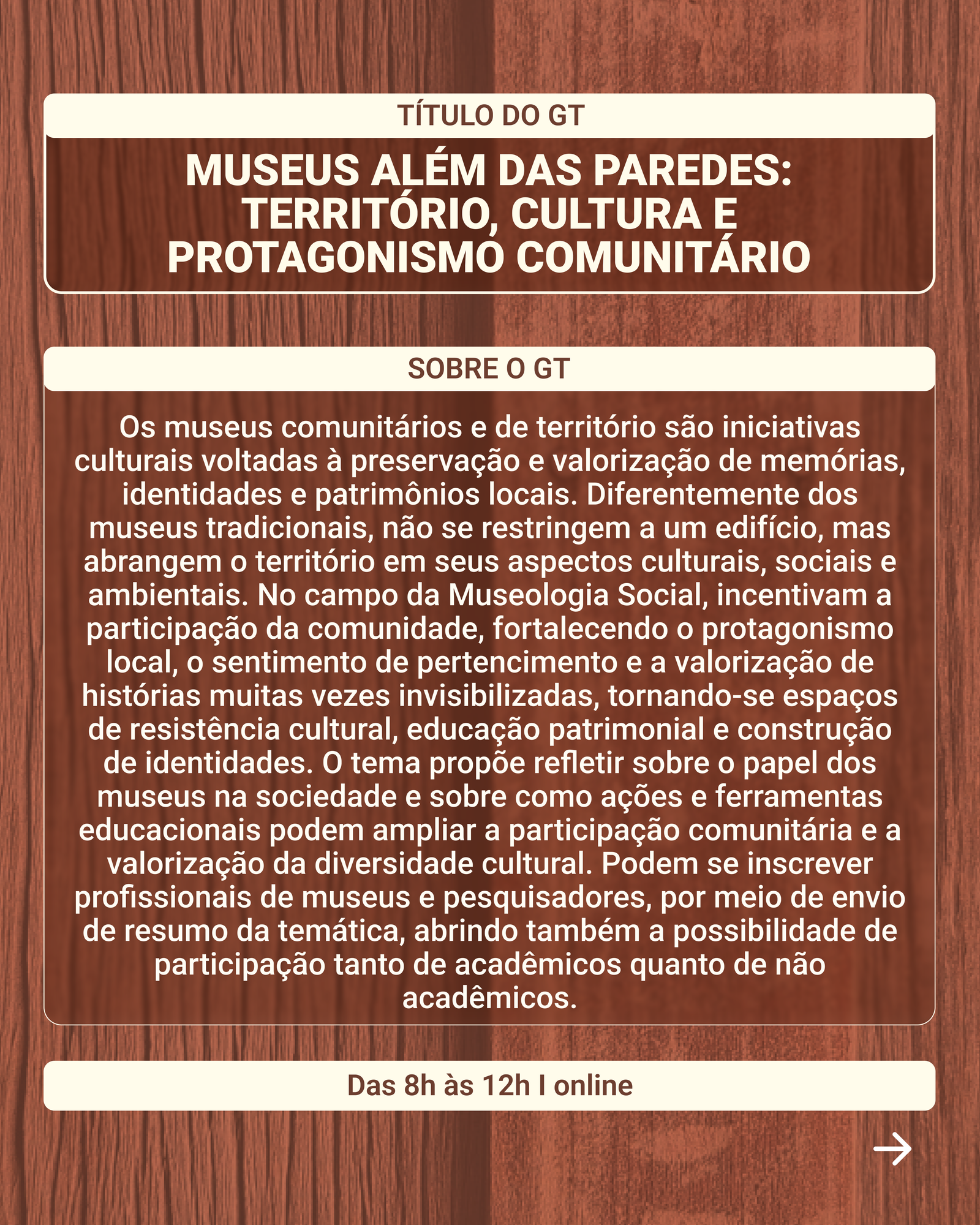 GT 1.3: Museus além das paredes: território, cultura e protagonismo comunitário
