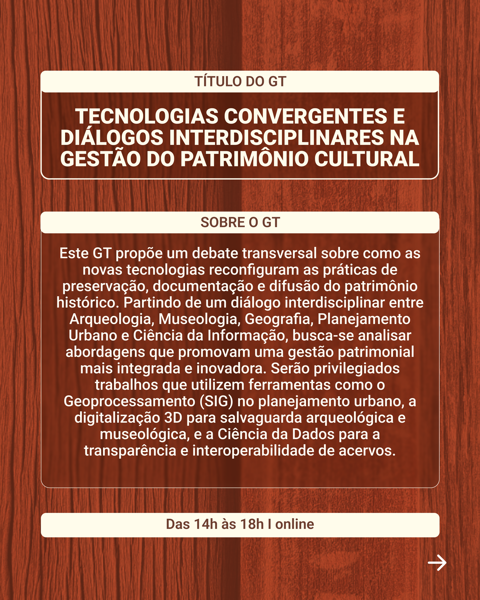 GT 3.2 - Tecnologias Convergentes e Diálogos Interdisciplinares na Gestão do Patrimônio Cultural