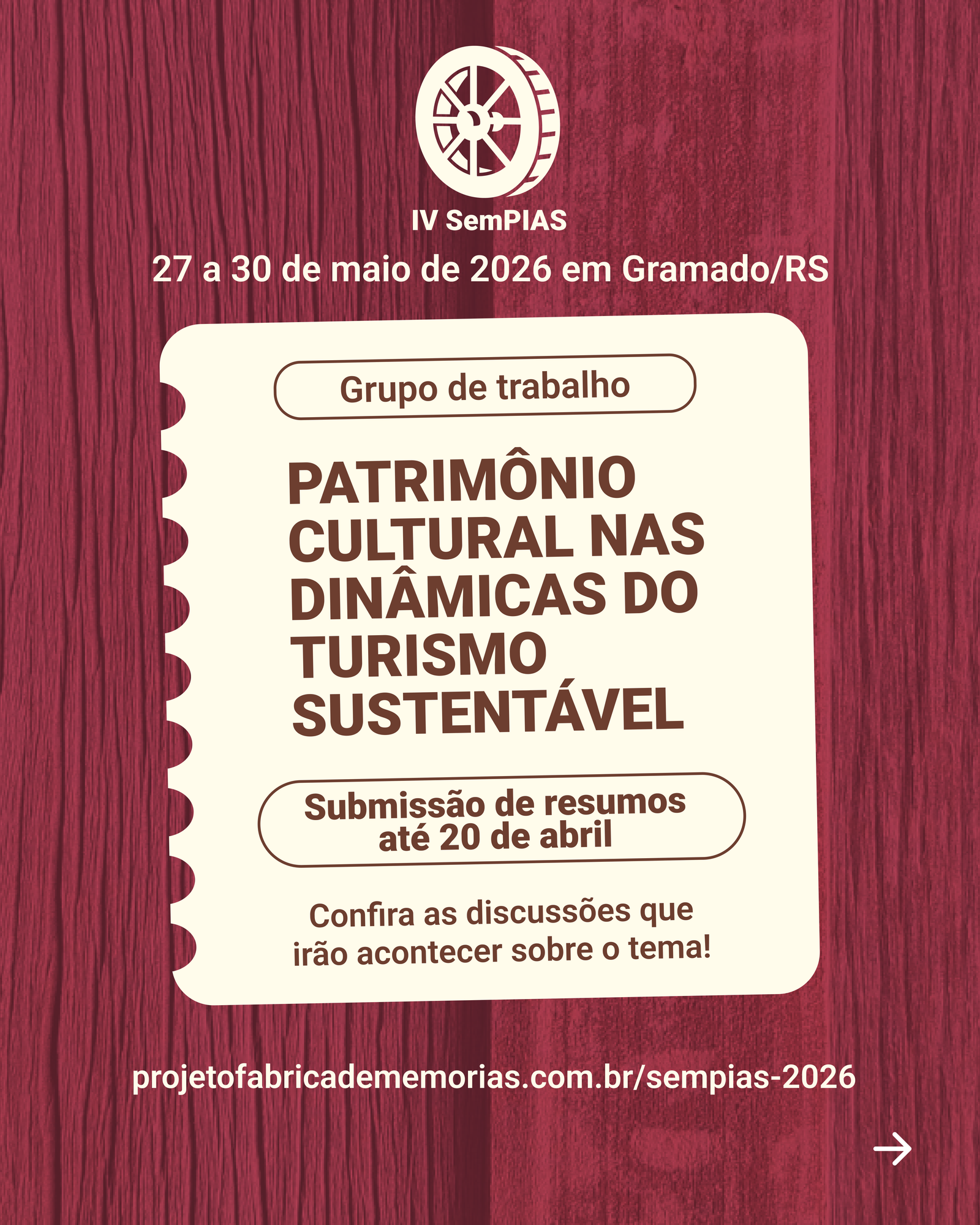 O SemPIAS oportunizará a inscrição de trabalhos com conteúdos relacionados aos quatro eixos temáticos, organizados pelas temáticas apresentadas nos GTs. a serem apresentados em salas virtuais, gravadas e disponibilizadas no site do evento. Os trabalhos efetivamente apresentados serão publicados no formato de textos completos nos Anais do evento. Ainda, nos terceiros e quarto dia visitas técnicas mediadas, antecedidas por palestras. Nas semanas anteriores ao SemPIAS haverá uma série de atividades pré-eventos em modo virtual e presencial. O evento se apresenta em parceria com: Unipampa, FURG, Unilassale, UCS, Instituto Terra e Memória (Mação/PT), Cátedra UNESCO-IPT Humanidade e Gestão Cultural Integrada e Prefeitura Municipal de Gramado, tendo como sede do evento presencial, a cidade de Gramado.