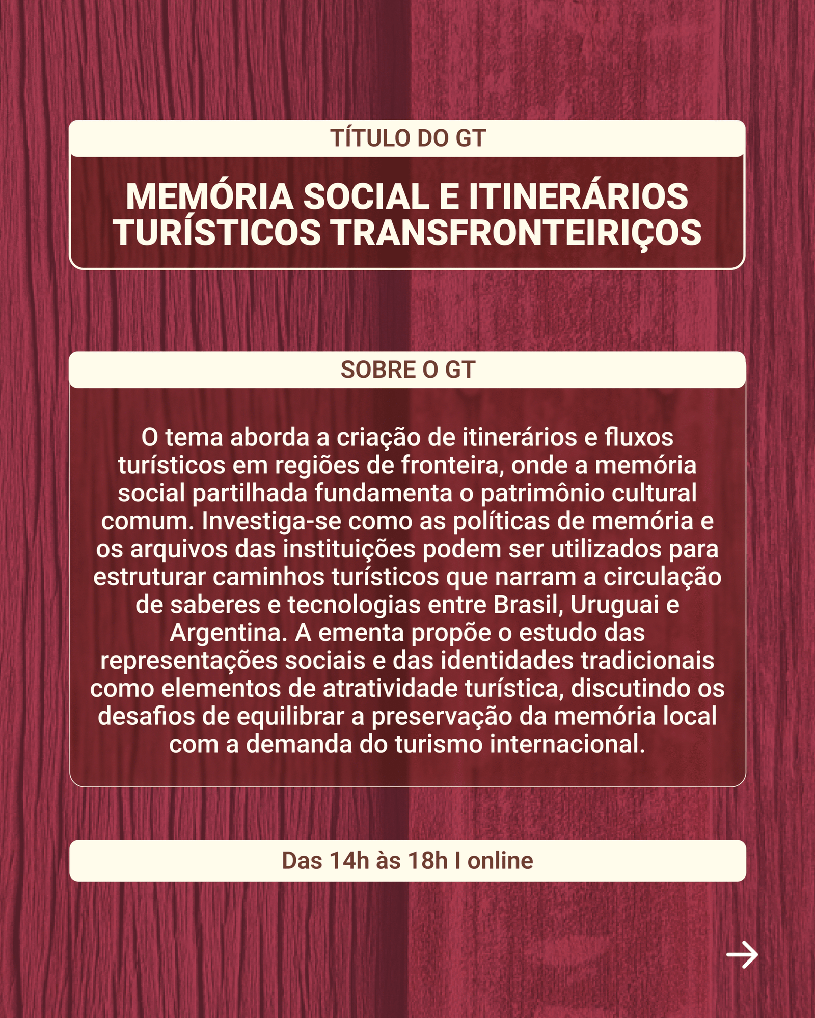 GT 4.2 - Memória Social e Itinerários turísticos transfronteiriços